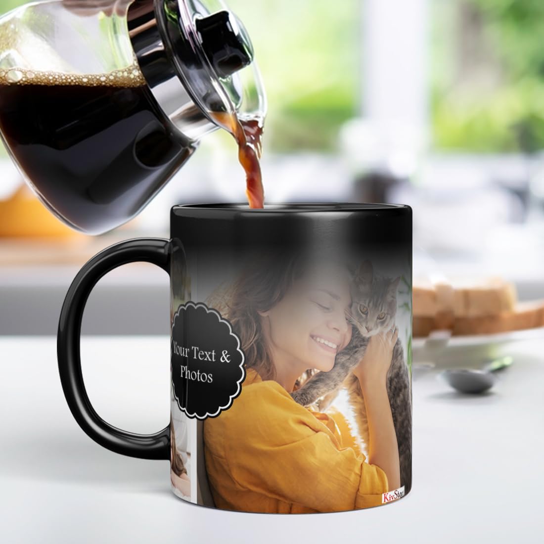 This heat-sensitive Magic Mug looks plain black at first β€” but as soon as you pour a hot drink, your custom photo or design magically appears! 🌈